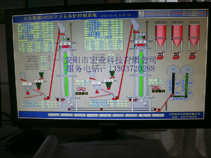 通過程序控制石灰窯設(shè)備(混配系統(tǒng)、卷揚機、旋轉(zhuǎn)布料器、兩段密封閥、出灰機等設(shè)備)完成原燃料自動稱量與均勻混配、豎爐煅燒、成品自動出灰等生產(chǎn)過程的全自動控制,故障自動檢測并實現(xiàn)中文語音報警。